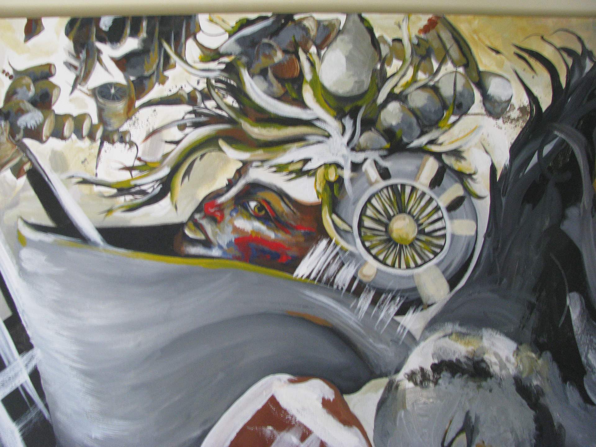 Finally found a bit of time this last weekend to work on finishing a very large piece. It's been waiting for my attention over these busy months. . . about half done. ... thinking a large gaudy red frame will have to be custom built 7 feet wide by 4.